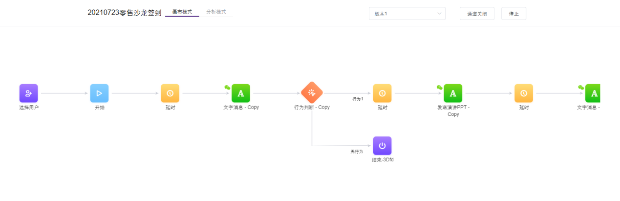用户旅程能够可视化地设置和推进企业在微信平台上与用户互动交流的全过程。运营者可以根据自身需求和目标用户的触点,在后台制定针对不同群体的互动流程,实现与用户在微信端的精准互动。通过用户旅程工具,配合聊天机器人以完成用户信息的在线实时收集和汇总;通过个性化图文推送,品牌可追踪点击图文、阅读原文、点击文章链接等粉丝行为,让运营人员的工作更加顺畅。