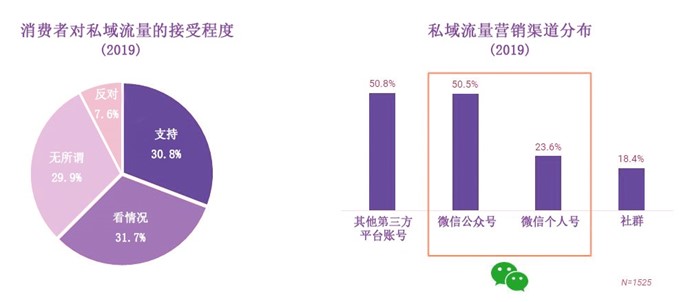 图二、消费者接受程度和私域流量营销渠道分布