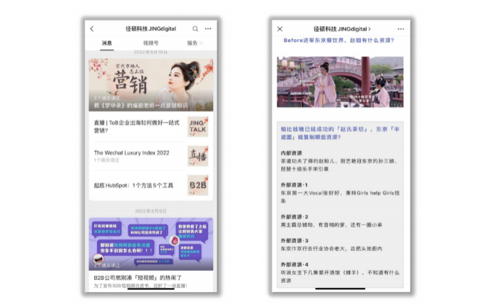 由此可见,订阅号的推送频率更高,让品牌有更多机会与粉丝互动,让客户看到更新,从而加深对品牌的印象。基于这一特点,订阅号更适合需要定期曝光的行业或公司,例如快消品行业。相比之下,服务号更适合To B的企业,例如提供电信等基本服务的公司。