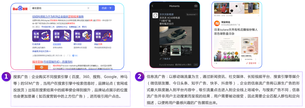 「搜索引擎广告」和「信息流广告」是B2B企业最常用的两种广告模式。以径硕科技自身的投放经验来看:信息流初始线索成本<搜索初始线索成本;信息流MQL成本>搜索MQL成本;信息流SQL成本>搜索 SQL成本。