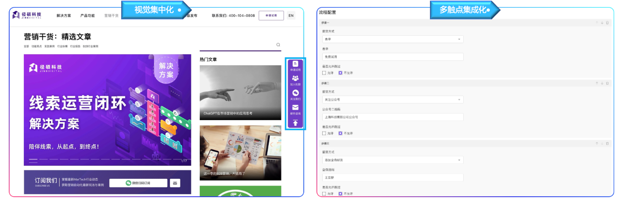 径硕科技建议企业可以采用「视觉集中化」和「多触点集成化」两种策略: